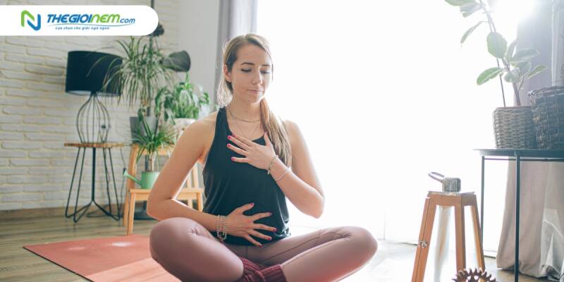 - Thực hiện kỹ thuật thở sâu: Ngồi hoặc nằm thoải mái trong một vị trí thoải mái. Đặt một tay lên ngực và tay kia lên bụng. Thở vào qua mũi sâu vào lòng bàn tay, cảm nhận sự nở rộng của ngực và bụng. Sau đó, thở ra từ từ qua miệng, cảm nhận sự giảm nhỏ dần của ngực và bụng. Lặp lại quá trình này trong ít nhất 5 đến 10 lần, tập trung vào hơi thở và lựa chọn nhịp thở chậm dần để thư giãn tâm trí và cơ thể.