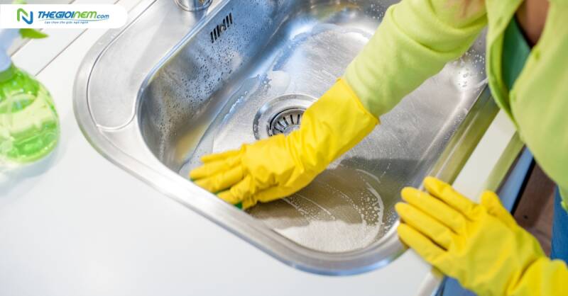 Vệ sinh bồn rửa bát sau khi sử dụng